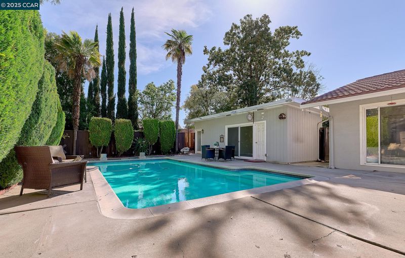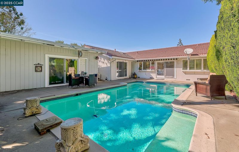 Charming and expansive single story in Livorna Estates! This spacious, single story 3 bedroom 2 bath is such a delight! Single story is perfect for multigenerational living. Light and bright with a darling sunporch/potential plant sanctuary off the main entrance! Features include newer flooring, fresh interior paint, some updated lighting, updated bathroom, 2 fireplaces, 3 car garage and more! The backyard is a lovely oasis! Sparkling pool with cabana (Cabana could used as a flex space for home office, art studio, meditation room, in-law space, so many possibilities) redwood trees, gardening areas and multiple storage sheds. Location is incredible! Minutes to everything, Whole Foods, Peets, Schools and Freeway! The charmer you don't want to miss!