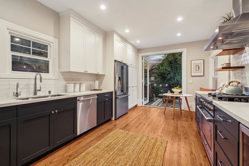 Nestled on a sought-after, tree-lined street in vibrant Temescal, this standout home seamlessly blends character, function, and style. Featuring three spacious bedrooms, two and a half bathrooms, plus a detached studio, it offers two levels of sunlit living space thoughtfully updated throughout. The home's updated windows, systems, and EV charger provide modern conveniences that enhance the original charm. Step inside the welcoming foyer with built-in bench seating, which flows into a cozy living room with a fireplace and custom cabinetry. The open dining room with original built-ins and open beam ceiling flows into a beautiful chef’s kitchen with quartz countertops, a six-burner range, pull-out pantry storage, and a sunny breakfast nook. French doors from the kitchen lead to a lovely deck and landscaped backyard for easy entertaining. The versatile detached studio, ideal for an office, gym, or creative retreat, rounds out the outdoor offerings. Back inside, the main level also features a tranquil primary suite with a walk-in closet and spa-like bath. Upstairs is a den with a hidden laundry center, a full bathroom, and two bright bedrooms with generous closets. This special home is just blocks from Temescal’s popular eateries, shops, and BART - come fall in love!