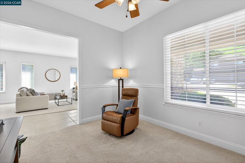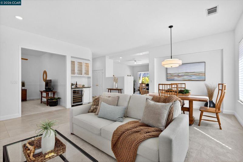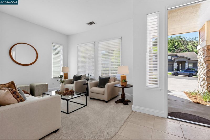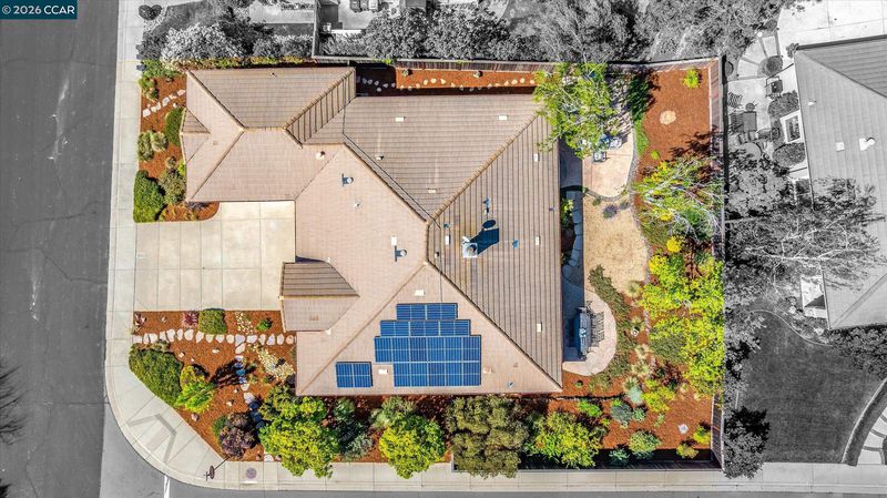 Beautifully maintained single-story home on a spacious corner lot in a quiet cul-de-sac. Charming curb appeal with covered entry, stone-wrapped columns, front porch with sitting area, and landscaped yard featuring a fountain, mature shrubs and natural stone pathways. Inside offers soaring ceilings, abundant natural light, large picture windows, and an open-concept layout connecting the kitchen, family room and living/dining areas. Kitchen includes granite countertops, stainless steel appliances, a five-burner gas range, double ovens and a center island with seating. The family room features a gas insert fireplace, sliding glass door and custom built-in cabinetry with integrated lighting, display shelving and a built-in desk. Built-in dry bar with glass-front cabinetry and wine refrigerator. Spacious primary suite with private patio access and designer-appointed bathroom with double vanity, glass shower and walk-in closet. Two custom flagstone patios enhance indoor-outdoor living. Additional features include a two-car garage with extra space, laundry room with sink, Hunter Douglas & Graber blinds, Andersen windows, owned solar and newer HVAC. Private backyard with mature trees, a mix of drought-tolerant and traditional landscaping. Ideally located near trails, parks and downtown.