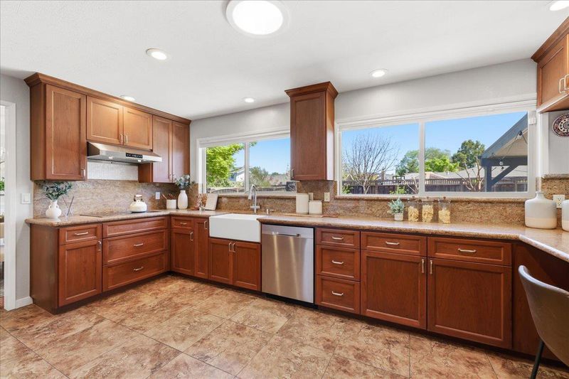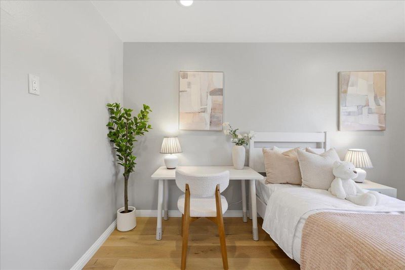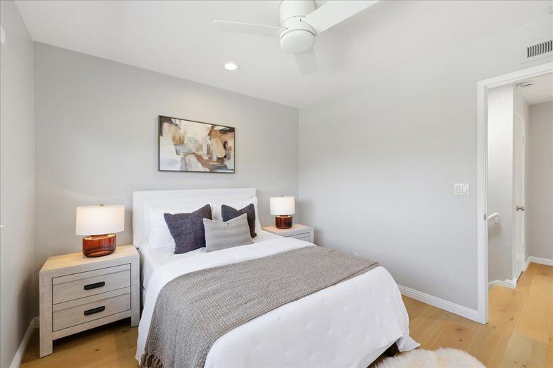 Welcome to this move-in ready and private home located in the heart of Almaden Valley. Featuring 4 bedrooms and 3 bathrooms, this home is thoughtfully designed for modern comfort and everyday living. The bright and airy living room showcases vaulted ceilings and abundant natural light. The kitchen offers beautiful cabinetry with ample storage, and SS appliances. Separate dining and family rooms provide flexible spaces for both daily living and entertaining. The first floor also features one bedroom and a full bathroom, offering convenience for guests or multi-generational living. Upstairs, the spacious primary suite includes an updated en-suite bathroom with double vanities and a large walk-in shower. Two additional bedrooms are bright, versatile, and well-sized. Additional interior features include central HVAC, double-pane windows, engineered wood flooring upstairs, sun tunnels, and an updated hall bathroom. Situated on an expansive lot of nearly 8,000 square feet, the backyard offers paver flooring, mature trees, and excellent privacy. Located near shopping center Almaden Plaza, Almaden Lake Regional Park, and Los Alamitos Creek Trail, this home also benefits from award-winning schools including Simonds Elementary, Bret Harte Middle, and Leland High School. Must See!