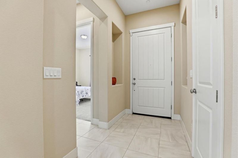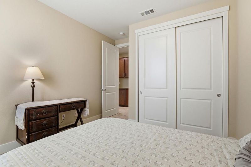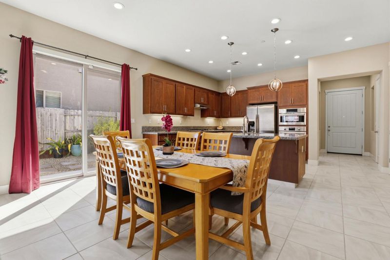 Fantastic Santana Ranch Single Story - This Anderson Home "Monterey" Model w/No HOA is approx. 2003 SF w/4 beds & 2 full baths on a 7,980 SF lot. Welcome to your fully landscaped low maintenance front yard w/covered entry, & 8 ft. tall insulated front door. High ceilings greet you w/tiled entryway & spacious front bedroom & open concept kitchen that features granite counters, Island w/sink, stainless steel Bosch appliances, gas cooktop, & built-in oven & microwave. Tall ceilings w/recessed lights & a gas fireplace living room make for comfortable open concept living & entertaining. 8 ft tall interior doors give the home a grand feel & are a wonderful accent to the spacious bedrooms. The hall bath has marble countertops, double sinks & a tub shower combination. The interior laundry leads to a fully finished attached garage w/ efficient tankless water heater & wide garage door. The main bedroom retreat features tall ceilings, rear yard access, ensuite bath w/double sinks, marble countertop, water closet, stall shower, sunken tub & walk-in closet. The home is equipped with a fire suppression system & security alarm. Bedrooms pre-wired for cable. Rear yard has low maintenance landscaping & is pre-plumbed for a gas BBQ & has external electrical outlets. Community Park & School Nearby.
