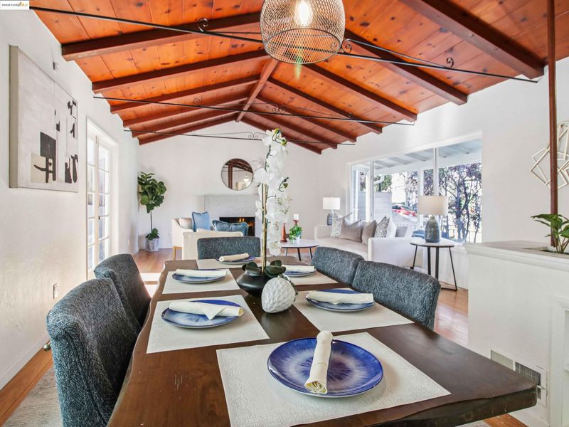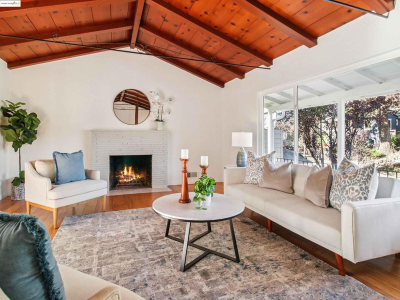 Mon Nov 3, 10:00 am - 1:00 pm Vaulted wood ceiling with exposed rafters and tongue-and-groove planks adds character to the living room. French doors open to the back patio for easy entertaining. Major system upgrades include new roof, 200A electrical, furnace and ductwork, seismic retrofit, new sewer lateral, sidewalk compliance, and clear section 1 pest. Refinished original hardwood floors throughout. Fourth bedroom makes a great office with direct backyard access.