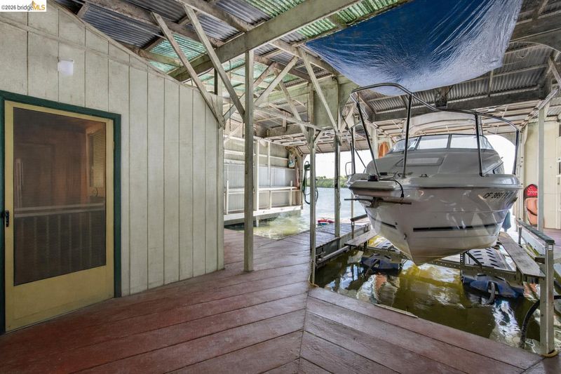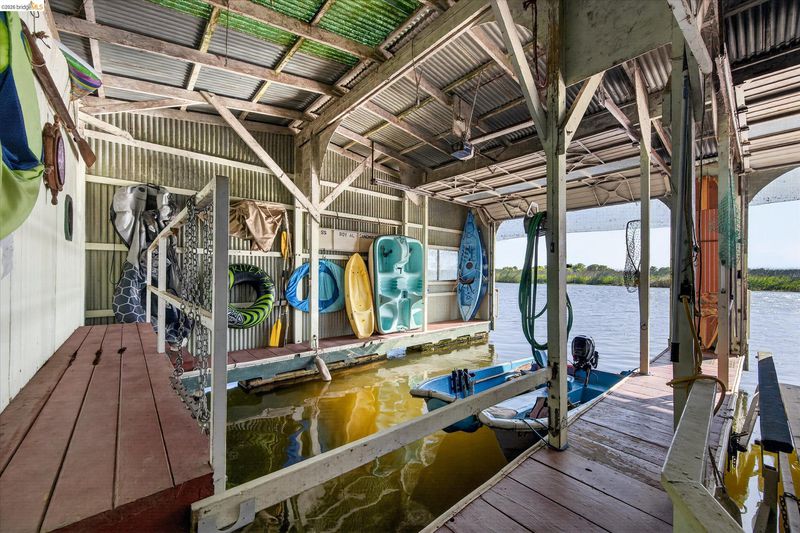 Waterfront Oasis with Room for Everyone. Welcome to your private waterfront retreat offering space, flexibility, and endless potential for multi-generational living or income. The upper level features a spacious layout with 2 bedrooms, 2 bathrooms, full kitchen, laundry, and an expansive living area—perfect for relaxing or entertaining with plenty of shade on a sunny day to view nature and incredible water views. Enjoy the sunrise from either back deck or take a sunset cruise by water. The lower level includes a private studio complete with full bath, kitchen, and laundry, ideal for guests. A standout feature is the enclosed boat berth, equipped with two slips, and a hydro hoist, 2 roll-up garage doors, two bedrooms, a full bathroom, and kitchen—not to mention one additional outdoor slip, a rare and versatile waterfront amenity. Surrounded by lush landscaping and vibrant greenery, this property creates a true oasis feel. Additional highlights include 30 owned solar panels for energy efficiency, an irrigation pump for easy landscape maintenance, newer roof, new trex deck replaced in 2023. This is waterfront living at its finest—functional, flexible, and full of possibilities. With the right offer all fixtures and furnishings including water toys and all boats can be yours! * a few of these pics have been edited for size/removal of some items*