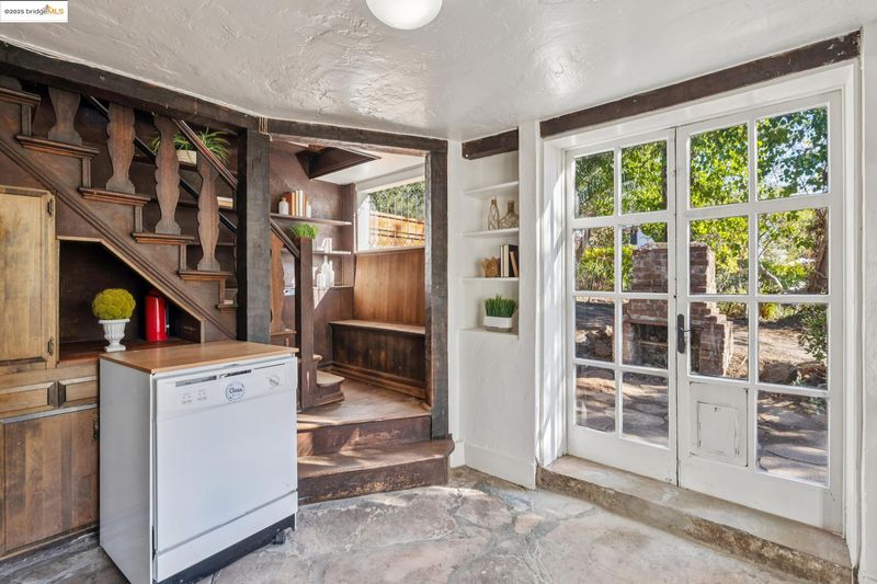Nestled on a tranquil hillside, this rare Lincoln Heights retreat offers exceptional privacy surrounded by mature trees & lush greenery. The expansive lot provides endless potential, whether crafting your dream sanctuary, adding an ADU, or exploring SB9 development options. The charming two-story home features 1 bed/1 bath, abundant natural light, & timeless character. The open living area showcases hardwood floors, colonial grid windows & a cozy fireplace, while Victorian-era glass pocket doors reveal a formal dining room with built-ins and serene views, perfect for entertaining. Downstairs, a hidden haven awaits with an Early American–inspired kitchen featuring hand-hewn beams & a delightful breakfast nook for morning coffee and birdsong. Additional highlights include an attached garage, full-size washer/dryer, and two Tuff-Sheds for storage. The park-like grounds invite gardening or expansion. Minutes to Joaquin Miller Park, Hwy 13, and Montclair Village, peaceful hillside living meets city convenience.