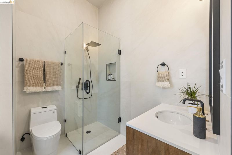Welcome to Josephine’s Cottage (c. 1880), a reimagined modern Victorian blending historic charm with refined, contemporary design. Grand 11’ ceilings, a vaulted living room with exposed wood beams, and a striking open kitchen bring light and scale to the main living spaces. The primary suite offers a calm retreat with double closets and an en-suite bath, while two additional bedrooms look out to the patio and share a hall bath. Fully renovated with updated systems, including a heat pump for efficient heating and cooling, and an improved floor plan, this is not a generic renovation, but a home that honors its original character while elevating it for modern living. Out back, a sun-filled level garden and trellised deck set the scene for easy outdoor entertaining. A detached studio with full bath and a converted garage combine for an additional ~317 SQ FT of bonus space (not included in main living area). Ideal for guests, a home office, or fitness. Right in the heart of North Berkeley’s Gourmet Ghetto—home to Chez Panisse, The Cheese Board Collective, and Live Oak Park—with cafés, shops, and the weekly farmers market just around the corner. 94 Walk Score, leave the car behind. BESO 5.