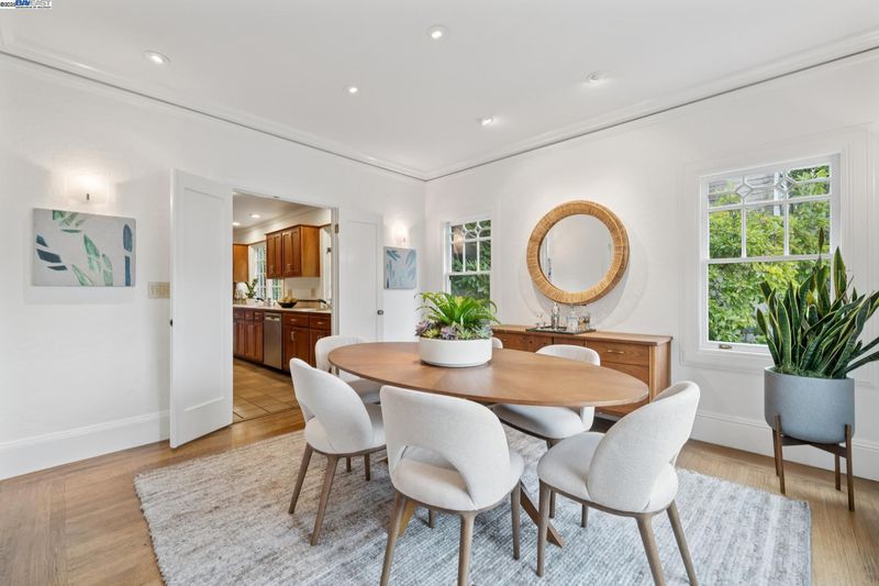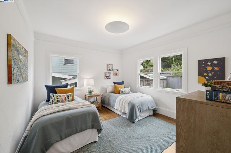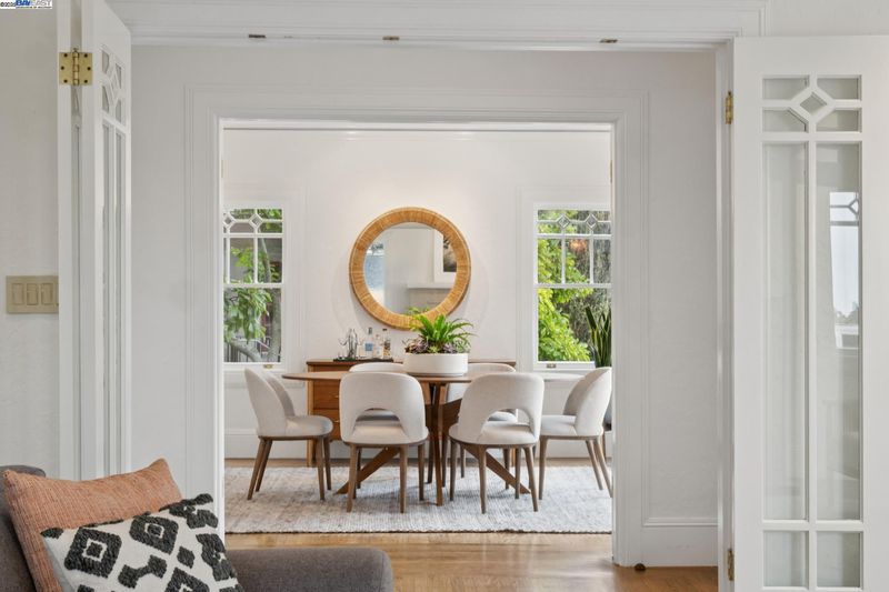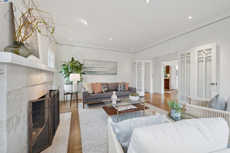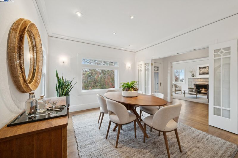 Enjoy the best of North Berkeley living in this 3+BD/2BA Craftsman treasure with Bay views, set in one of the city’s most desirable locations near both lively Shattuck and Solano Avenues. Through a gorgeous beveled glass door, the 2157 SQFT welcomes you with its gracious foyer and vintage architectural details including: French doors, crown moulding, mullioned windows, built-ins, and hardwood floors. Relax with friends and family in the living room with its cozy fireplace and picture window of the treelined street. The sunny dining room connects to the stylish cook’s kitchen featuring Miele ovens, Thermador stovetop, Bosch dishwasher, SubZero fridge, and a glass door to the backyard. Dine al fresco on the patio, garden in the raised beds, or drink your morning coffee on the deck. The refurbished 1-car garage has side French doors, making it a flexible space for work or play. Back inside, the lower level is complete with a full bath and two bright bedrooms. Upstairs, a family room/office awaits, while the primary suite enjoys Golden Gate and Mount Tam views, a large walk-in closet, and an ensuite bath. Find laundry and storage in the basement. Beloved Live Oak Park is two blocks away, Cal and BART are down the road, and Tilden Park awaits up the hill.