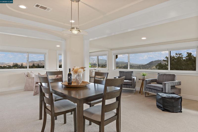 Best View in Rossmoor! Experience refined living with panoramic views of Mt. Diablo, the rolling hills of Rossmoor & downtown Walnut Creek from this extensively remodeled 2-bedroom, 2-bath home in Rossmoor’s 55+ community. Step inside to beautiful wood floors in the entry and kitchen, complemented by skylights, recessed lighting, and dual-pane windows that fill the home with natural light. The open-concept kitchen is designed for both entertaining and everyday living, featuring custom cabinetry, stone counters, stainless steel appliances, under-cabinet lighting, and windowed upper cabinets that flow seamlessly into the dining area. The living space is anchored by a cozy electric fireplace with elegant built-in cabinetry, while a versatile enclosed room offers the perfect spot with built-in office or hobby space. The spa-inspired primary bath showcases tile flooring and a large stall shower, while the second bath includes tile flooring and a walk-in jetted tub/shower for relaxation. Additional highlights include luxury vinyl plank flooring, plush new carpet, a conveniently located carport, and an extra storage unit. Enjoy Rossmoor’s vibrant gated lifestyle with golf, tennis, pickleball, bocce, hiking, fitness center, theater, dog park, hobby rooms, and 200+ clubs.