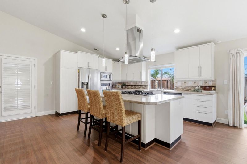 Tucked in a quiet cul-de-sac, this beautifully updated home offers light-filled living and a seamless open layout. Vaulted ceilings and engineered hardwood flooring enhance the main living areas, creating an inviting and functional space for everyday living and entertaining. The remodeled kitchen features white beaded shaker cabinetry, quartz countertops, stainless steel appliances, a farmhouse sink, and a spacious island with gas range and prep sink. The primary suite features high ceilings, a large walk-in closet, and an en-suite bath with dual vanities. A versatile bonus room offers the perfect space for a home office or gym. Additional highlights include A/C, ceiling fans throughout, and a gas log fireplace. Situated on an oversized 8,390± sq ft lot, the backyard offers turf, pavers, mature landscaping, and a large concrete side yard with potential for RV/boat parking.