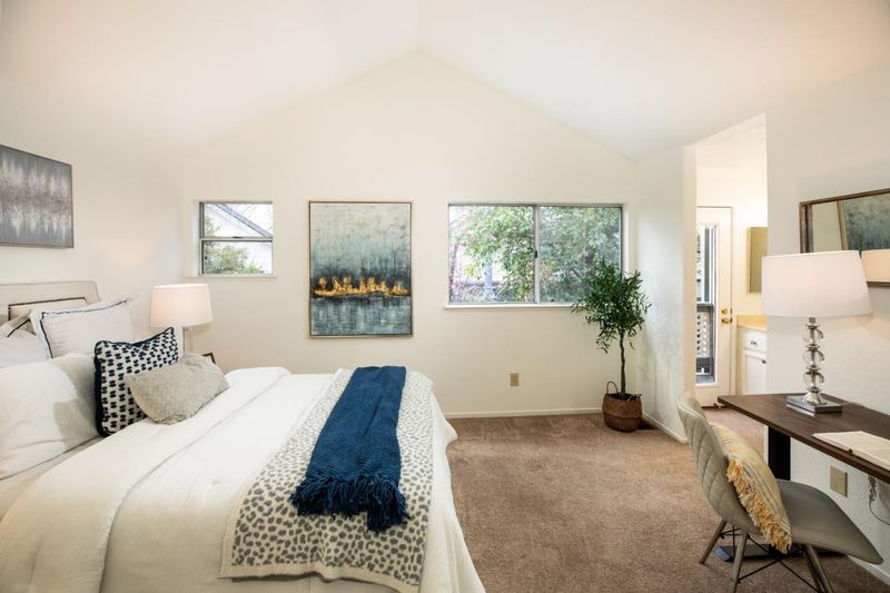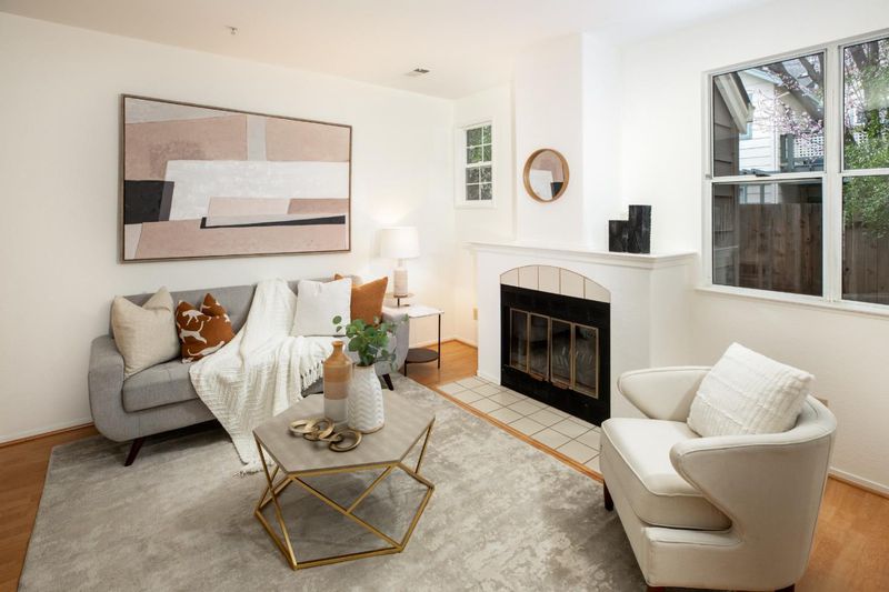 Welcome to this private townhome in desirable Oaktree Commons development. Two spacious bedroom suites with vaulted ceilings, attached baths and walk-in closets. 1,240 square feet of living space includes Living room/Dining area with woodburning fireplace and sliding door to patio plus half bath on main level. Kitchen features new dishwasher and microwave. New furnace just installed, inside laundry and attached 1 car garage. Great location adjacent to Klein Park. Short distance to Whole Foods, Trader Joes, Target and Walmart with CalTrain and bus line just a few blocks away.