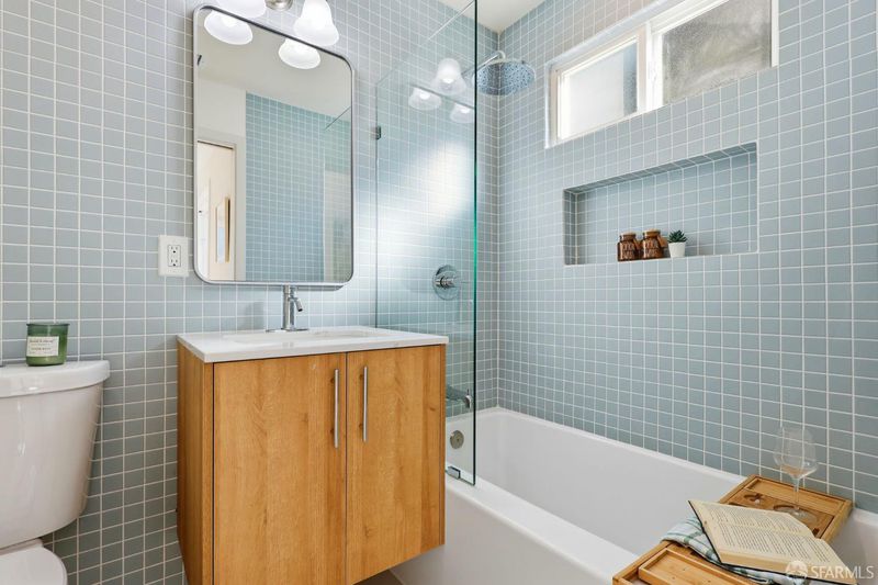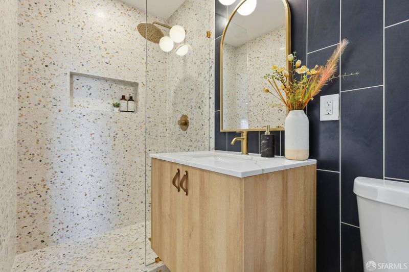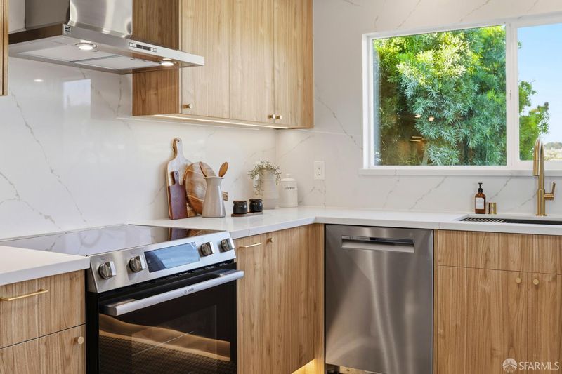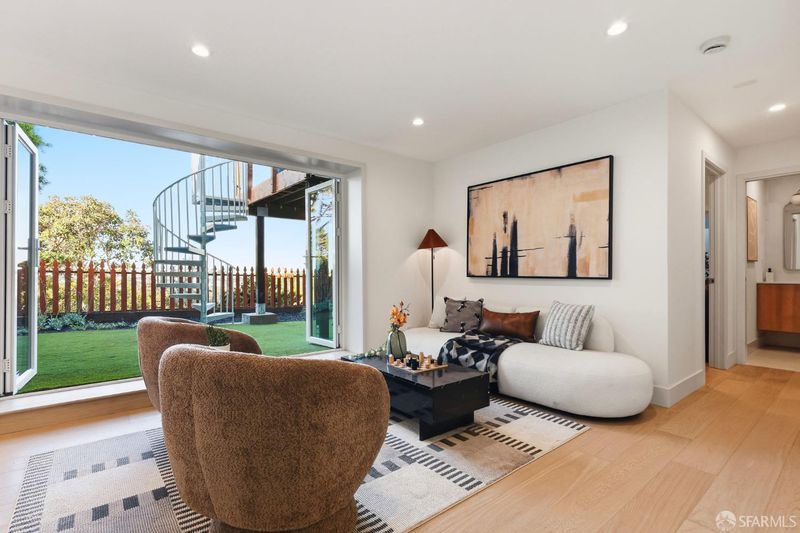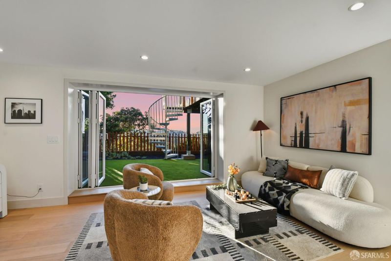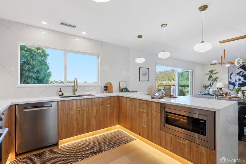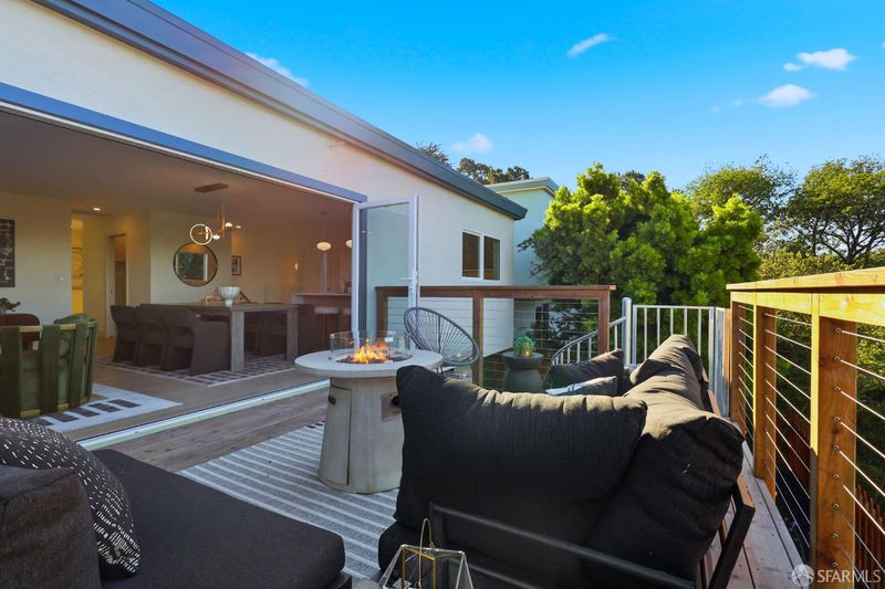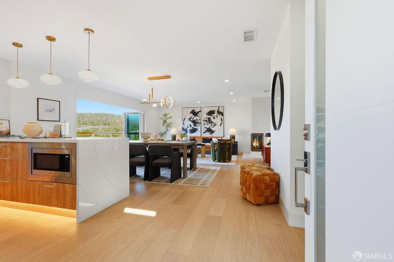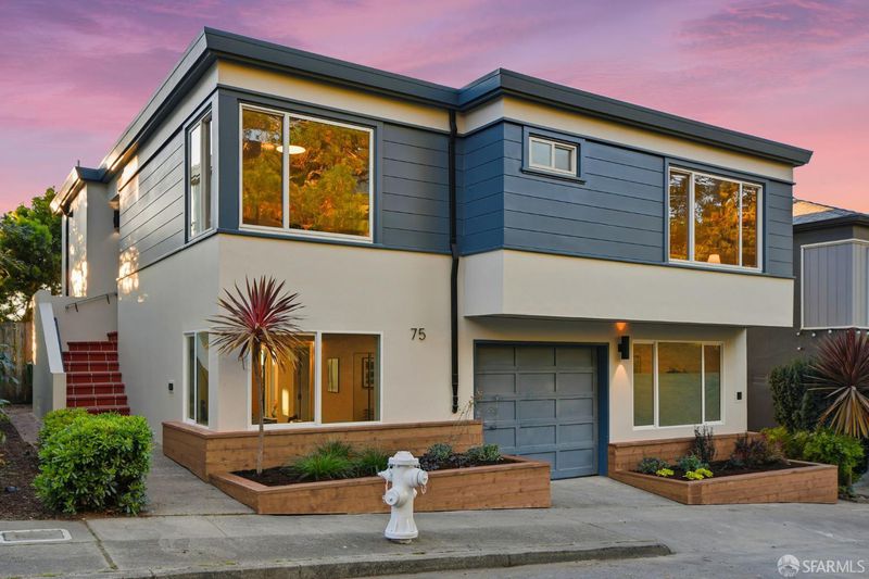 Fresh off a permitted and top-of-the-line renovation this fantastic, fully detached home has been brilliantly renovated to align with market demands. A great deal of craft went into designing the home's structural plan to achieve a phenomenal open floor plan that creates an ideal communal space, anchored on one end by a cozy, tile-clad fireplace and framed by a dramatic 10-foot foldable glass wall that opens onto a walk-out deck with views of the Pacific Ocean. The stunning kitchen includes a beautiful stone waterfall island and full slab wall, custom cabinets with corner and waste bin drawers, designer lighting, and Bosch appliances. 3 full-sized bedrooms, including a large ensuite primary complement the main level of the home while downstairs hosts 2 additional bedrooms and a luxuriously-sized full bathroom. Wide plank white oak flooring runs throughout the home which has been completely rewired, and features a brand-new furnace and laundry area. Every detail has been carefully considered, from the designer tiles to the curated lighting. Set on one of the nicest blocks in Midtown Terrace this home has five bedrooms and two versatile flex rooms - perfect for in-laws, au pairs, an office, gym, hobby space, or playroom.