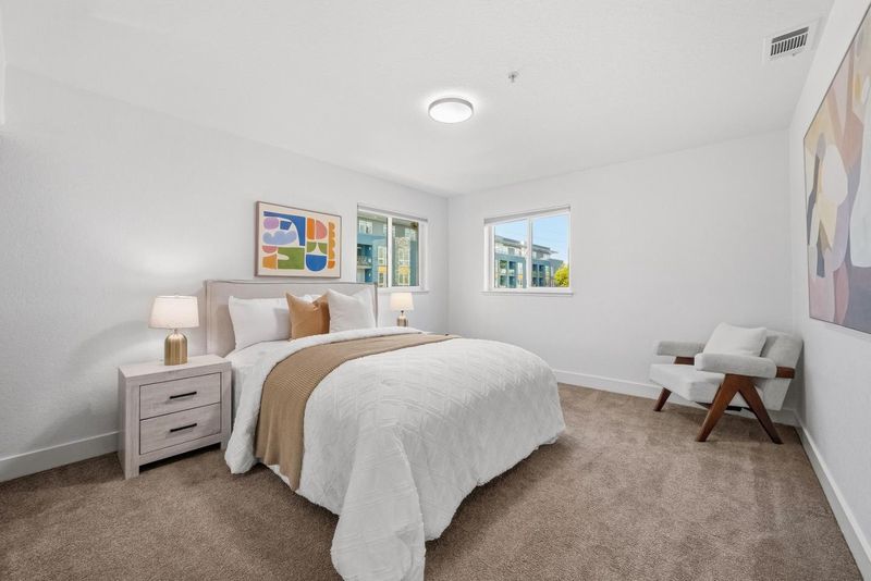 Step into this updated 3 bd/2.5 ba end-unit townhome nestled in the Oaktree Commons community. This 2-story gem offers privacy, modern amenities, and unbeatable location. The main floor invites you to relax/entertain with a smart layout. Cozy up by the fireplace in the living room, host dinners, or unwind in the back den/family room, which opens to a private fenced yard. French doors off the kitchen open to a private patio for morning tea overlooking Klein Park. Upstairs, three spacious bedrooms include a primary suite with vaulted ceilings, WIC, and a bathroom complete with soaking tub, sep shower, and a vanity/dressing area. Additional amenities include upstairs laundry hookups, central HVAC, and an attached 2-car garage with eV charger. This move-in ready home checks all the boxes: energy-efficient dual-pane windows, LED lighting, and refreshed kitchen/baths. Easy access to Klein Park, Trader Joes, Walmart, dining, cinemas, gyms, and Caltrain plus Free MV Shuttle. Commuters will love the prox. to Google, LinkedIn, Intuit, etc. with fast connections to Highways 101, 85, and Central Expwy. With only one shared wall, ample private outdoor space, and top-rated Los Altos High School, don't miss your chance to make this home yours!