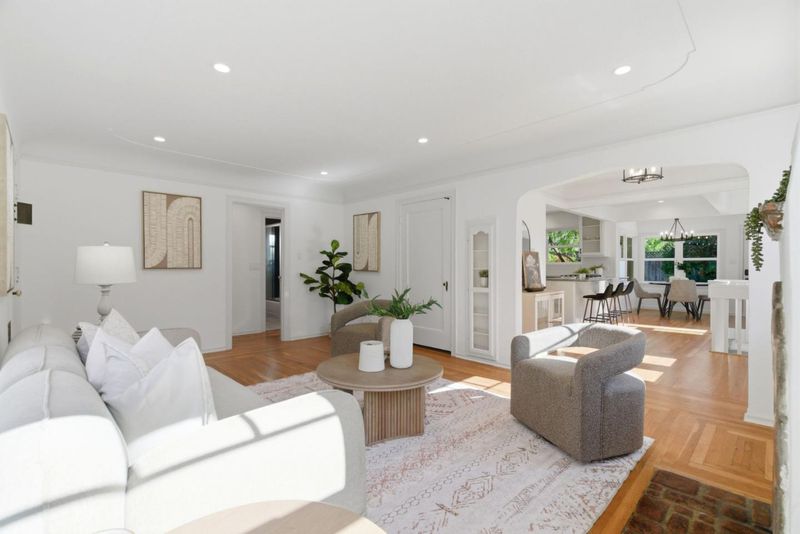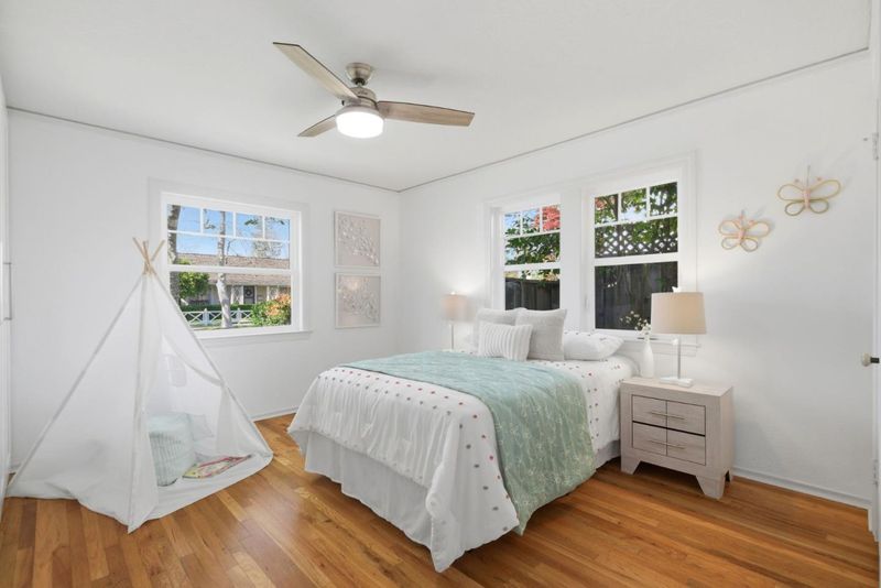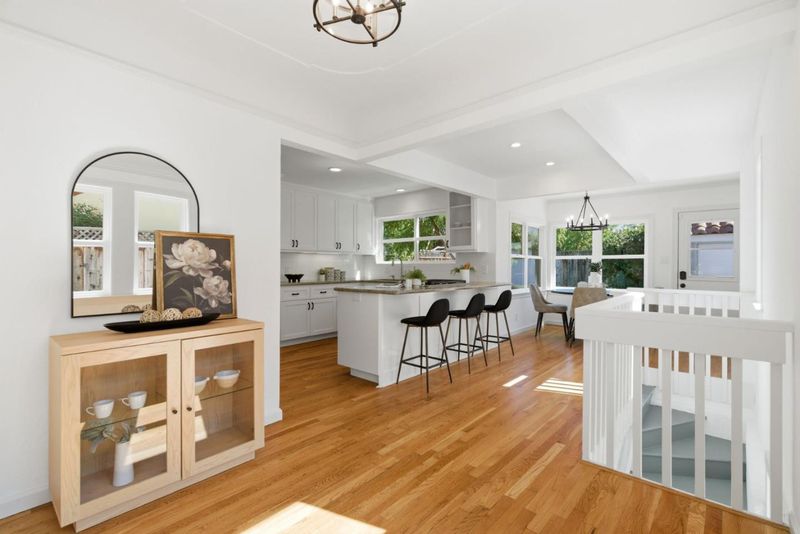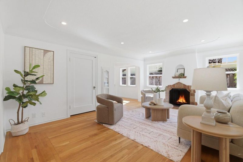 Beautiful Willow Glen Charmer! This area is known for its tree-lined streets and festive holiday lights. The inviting living room features hardwood floors and a beautifully tiled fireplace. The updated kitchen offers granite countertops, a gas cooktop, built-in oven, modern appliances, The kitchen opens to a dining area with a breakfast bar and charming nook. A huge walk down basement expands the living space and has been used as a family room, office, and recreation area. Timeless details include a picture rail, telephone nooks, cove moldings, recessed ceiling accents, a speakeasy grille, and some original door knobs. Tile and hardwood flooring enhance the interior, and the bathroom features a shower over tub with tile finishes. A tiled front porch adds charm, while a long gated driveway and 2-car garage provide ample parking. The beautifully landscaped yard is filled with flowers, lush plants, and string lights, creating a warm outdoor setting. The owned solar saves on energy costs, double pane windows, central AC and heating, indoor laundry, and generous storage throughout offer comfort and convenience. Located within the award-winning San Jose Unified School District and the Booksin Elementary zone.