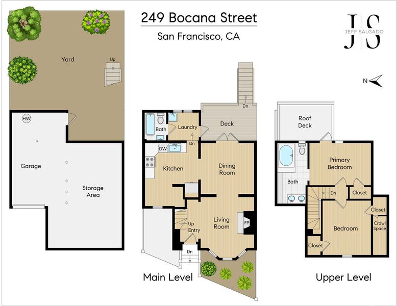 Tastefully updated two-bedroom, two-bath semi-detached Victorian situated on a treasured, tree-lined street in a cherished Bernal Heights location close to Cortland Avenue and Holly Park! The inviting front yard space, picket fence, and facade, set the tone for this special home that is quintessential Bernal. The main level presents an open living area with fireplace, gorgeous wood floors, and a dining room with direct access to a sun-drenched deck creating the coveted indoor/outdoor living experience. There is an updated gourmet eat-in kitchen conveniently located near the dining room, a laundry room, and a full bathroom on this same level. The upper level of the home has two bedrooms that are both awash with glorious natural light, one with an updated en-suite bathroom and direct access to a private deck with inspirational views. The main level deck leads to a tranquil and peaceful outdoor space offering the ideal setting for a gardener's paradise, entertaining, or serene solace and repose. There is a large storage/garage space with the possibility of future expansion, adding the final touches to this special property that is close to everything!