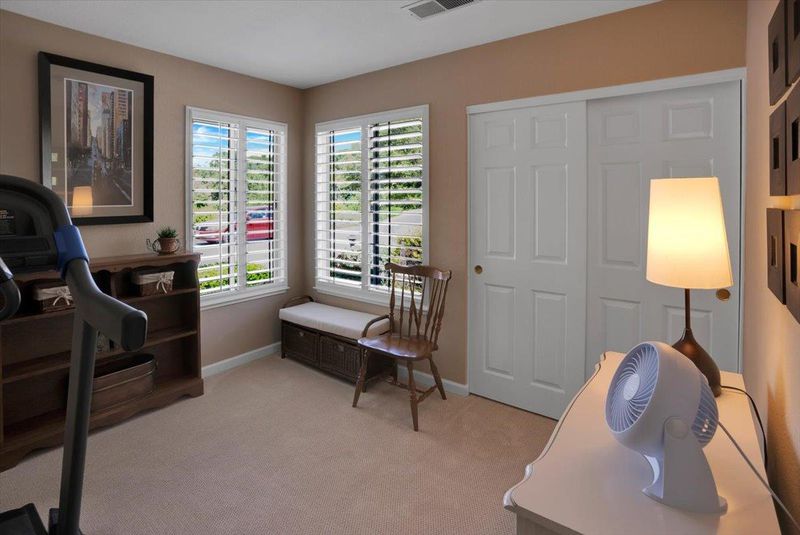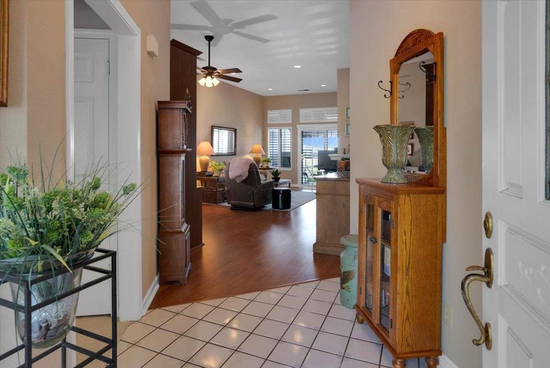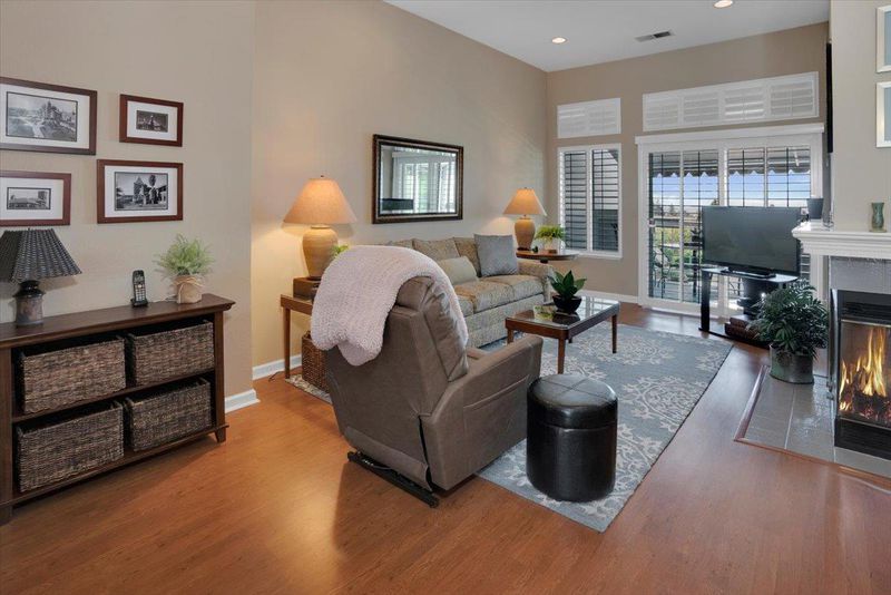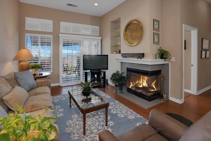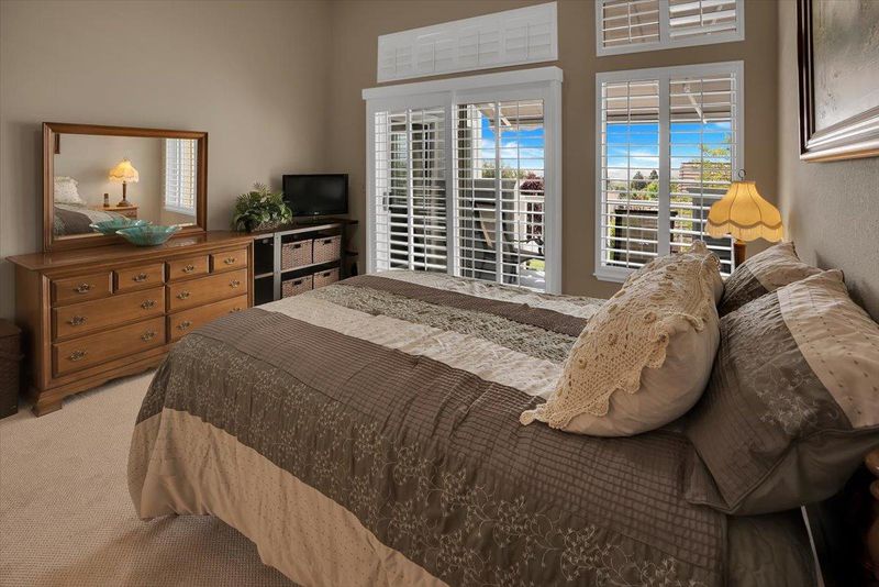 Elegant Single-Level Condo with Stunning Sunset Views in Premier 55+ Community*Upstairs unit located above 2 garages below*With no stairs and a low-maintenance layout, this home offers comfort, convenience, and sweeping west-facing views of the valley and evening sunsets*The remodeled kitchen features sleek quartz countertops, stainless steel appliances, and direct access to two private patios each with motorized retractable awnings*The living room includes a cozy gas log fireplace, built-in workspace and opens to the patio*The primary suite also offers patio access, a generous walk-in closet, and new carpeting* Additional highlights include a built-in office/workspace, plantation shutters throughout, a separate laundry room with washer and dryer included, and an attached two-car garage for added storage and convenience*Residents of this vibrant community enjoy access to an impressive array of amenities, including 9-hole and 18-hole golf courses, pickleball, tennis, and bocce ball courts. Stay active with four swimming pools, a state-of-the-art fitness center, and over 500 acres of scenic hiking trails. Additional features include equestrian stables, personal garden plots, a full-service restaurant, a casual bistro, and access to over 70 social clubs and interest groups