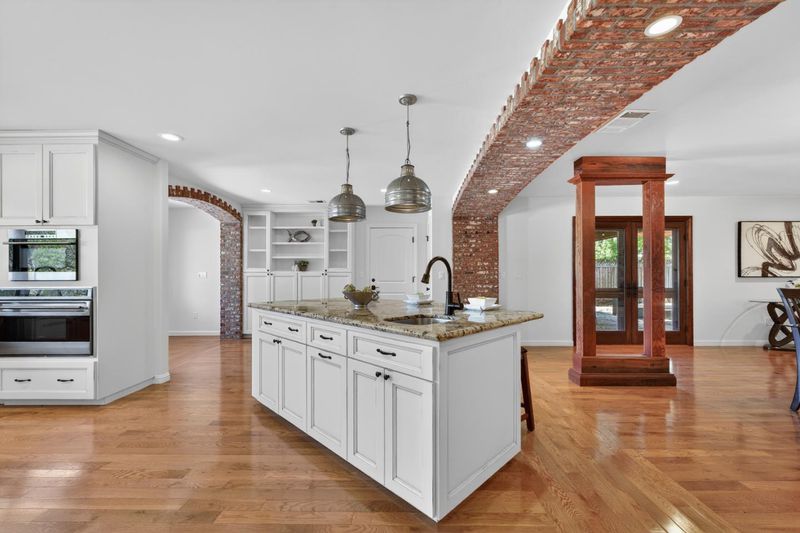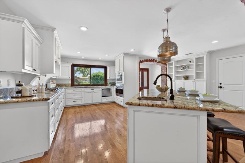- Cooktop - Gas, Countertop - Granite, Dishwasher, Hood Over Range, Island with Sink, Oven - Built-In, Refrigerator