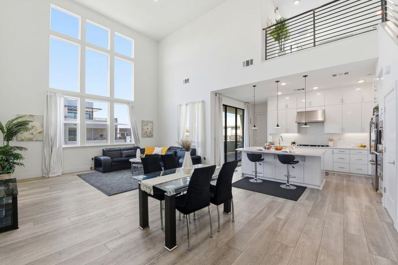 A beautiful stunning penthouse in a resort style community! With vaulted ceilings and two separate outdoor spaces, this 2135 sq.ft. corner unit penthouse provides plenty of space to enjoy! Occupying the top 4th and 5th floors of the building, this home is flooded with natural light coming through soaring high ceiling and row of large windows above. No neighbor above you in this top floor penthouse. Amazing condo entrance with spacious living spaces with large center island, spacious counter top in the kitchen with HQ appliances. Tastefully upgraded Cabinets, Flooring, Countertops, Backsplash, Stair Rails, along with EV Car Charger in garage. Main floor of the home is with two bedrooms and master bedroom next to the balcony. Second floor loft can be a library, study room or entertainment area and the patio door gives you access to a private roof terrace with linear fireplace and with the view of hills on one side and view of the Bay from other side. Located in Metro Crossing community with luxury amenities incl.: entertainment lounge, outdoor kitchens, state-of-the-art fitness center, pool, green belt, and kids play ground. Community is located across the new Warm Springs BART and with easy access to highways 680 and 880.