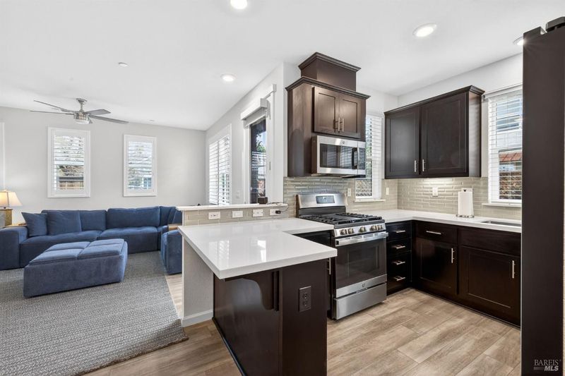 Move in ready, welcoming, and thoughtfully updated. Fresh, modern, and stylish throughout, this coveted end unit home offers high quality finishes and contemporary design elements that blend luxury with modern comfort. Plantation shutters add warmth and character, while the open concept layout creates an inviting space for everyday living and entertaining. Enjoy the convenience of an attached two car garage, EV charger, indoor laundry, tankless water heater, and a rare designated private driveway. The bright and functional kitchen flows seamlessly into the living and dining areas, making this home as practical as it is beautiful. Located in Santa Rosa's desirable Village Station community, just minutes from Historic Railroad Square, the SMART Train Station, and Downtown Santa Rosa. Enjoy low maintenance living with community amenities including a playground, dog park, bocce court, and sports fields nearby. An assumable FHA loan at approximately 3.5 may be possible, subject to lender approval and buyer qualification. Buyer to verify all financing options with lender.