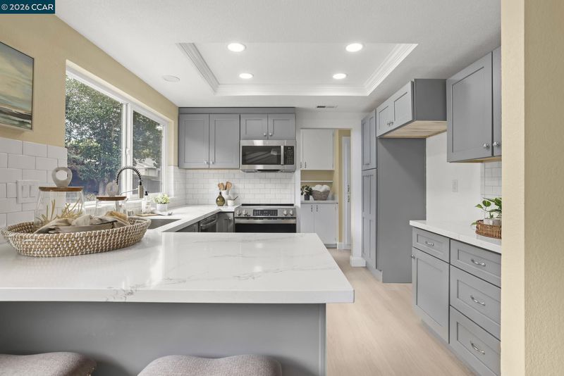 Dishwasher, Microwave, Free-Standing Range, Refrigerator, Gas Water Heater, Breakfast Bar, Counter - Solid Surface, Eat-in Kitchen, Disposal, Range/Oven Free Standing, Updated Kitchen