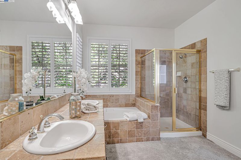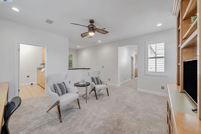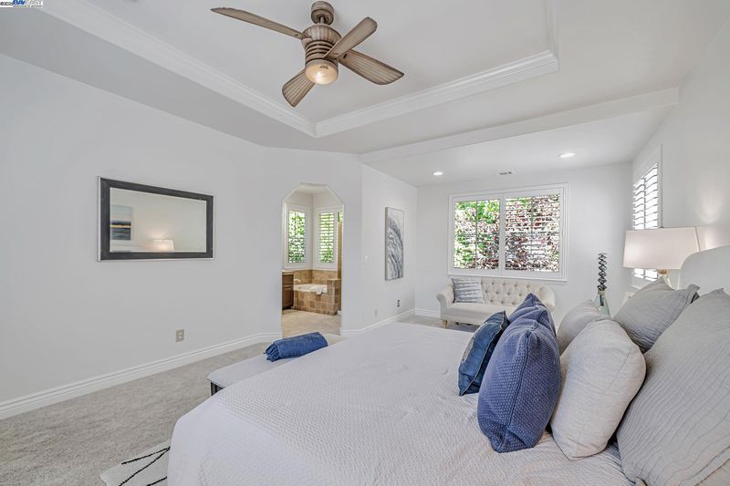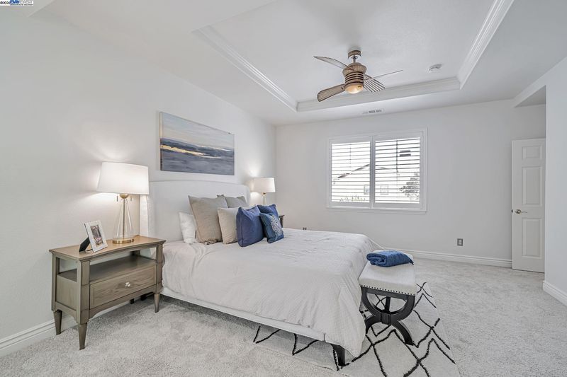 Welcome to this elegant 3-bedroom, 2.5-bath home with a spacious loft (optional 4th bedroom) in the sought-after Quail Gardens neighborhood. Enjoy a private lot with no neighbors on two sides and a serene backyard ideal for entertaining. The thoughtfully designed layout includes a formal living room, dining room, and a generous family room. Features include hardwood floors, crown molding, plantation shutters, and abundant natural light. The gourmet kitchen offers stainless steel appliances, gas cooktop, and breakfast nook. The primary suite includes a soaking tub, sitting area, and walk-in closet. Community pool and convenient access to Blackhawk Plaza, parks, and top-rated San Ramon Valley schools.