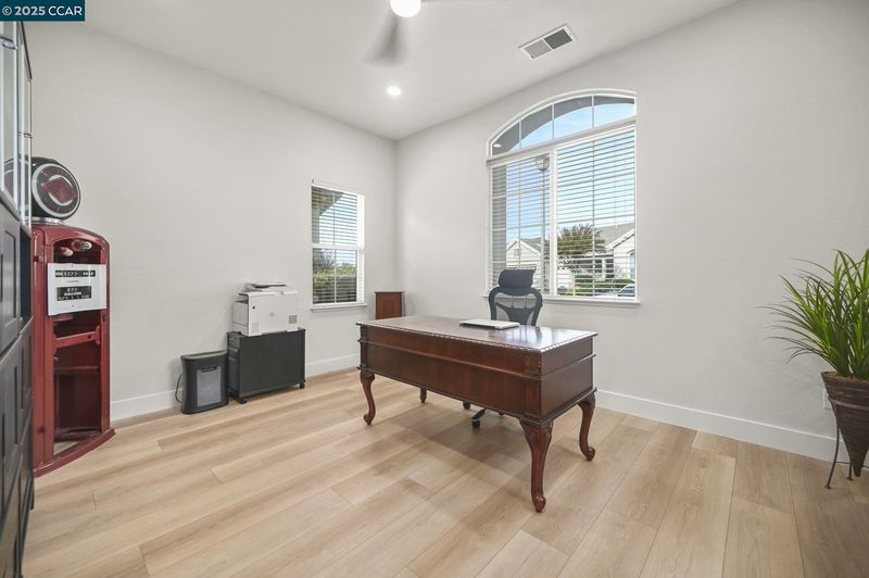 Move-in ready & sparkling clean! Beautiful Chesapeake floor plan extensively updated in 2024! This open, bright home features high-quality LVP flooring throughout, new baseboards, fresh interior and ceiling paint, and new lighting. The chef’s kitchen offers newer stainless steel appliances, granite countertops and matching granite backsplash, and an oversized 8’x5’ island—ideal for entertaining. Enjoy two spacious primary suites with en-suite baths on opposite sides of the home for perfect guest privacy. Additional spaces include a large office and flex/hobby room to fit your lifestyle. Step outside to a private patio with no back neighbors, plus a low-maintenance yard featuring turf front and back with a sprinkler system. Added bonuses: owned solar with battery backup (no true-up), EV charger, and all appliances included! Located in Summerset, a premier 55+ active adult community, offering resort-style amenities including an Olympic-size pool, spa, ballroom, craft room, library, fitness center, pickleball, tennis, and bocce—all with low HOA fees!