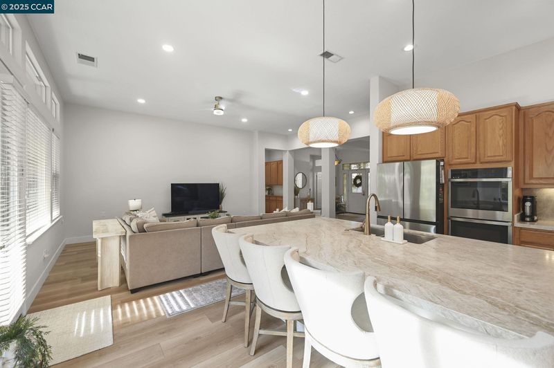 - Dishwasher, Gas Range, Refrigerator, Breakfast Bar, Stone Counters, Eat-in Kitchen, Disposal, Gas Range/Cooktop, Kitchen Island