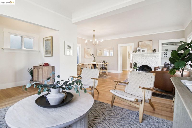 Careful - you just might fall in love! This picture-perfect Rockridge bungalow is almost too charming to resist, just steps from College Avenue’s beloved shops, cafés, and restaurants. Bathed in natural light, the home exudes warmth and character with thoughtful period details throughout. Enjoy true level-in living from the welcoming front porch, where sunshine lingers for much of the day. Inside, the open-concept living and dining areas showcase elegant coved ceilings and a cozy fireplace - ideal for gathering with friends and family. The updated, split-layout kitchen is both stylish and functional, perfect for whipping up culinary delights. Two serene bedrooms at the rear offer easy access to the deck and backyard, creating a seamless indoor-outdoor flow for dining and entertaining. Additional highlights include a generous driveway for off-street parking, a detached garage ideal as an artist’s studio or home office, and a spacious basement with laundry and storage. Located just blocks from BART and feeding to top-rated Chabot Elementary, this home perfectly blends comfort, location, and timeless Rockridge appeal.