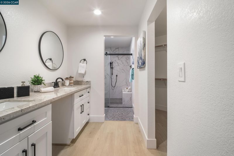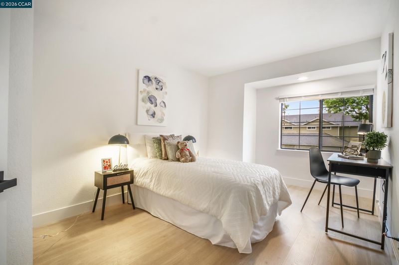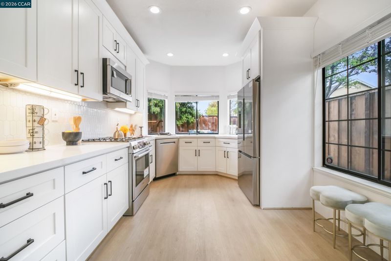 Fully renovated detached home in Fremont! High ceilings, luxury vinyl plank floors & recessed lighting throughout. Bright living room w/cozy fireplace & sliding door to the outdoors. Chef's kitchen features brand-new Bosch stainless appliances, 5-burner gas range, quartz counters, white shaker cabinets w/matte black hardware & hexagon tile backsplash. Spacious primary suite w/bay window, spa-inspired ensuite featuring dual sinks, quartz counters & walk-in shower. All baths fully updated w/granite counters & matte black fixtures. LG washer & dryer included. Steps to community pool, BBQ area, w/visitor parking front & rear. Move-in ready!!
