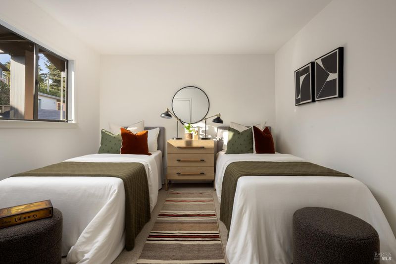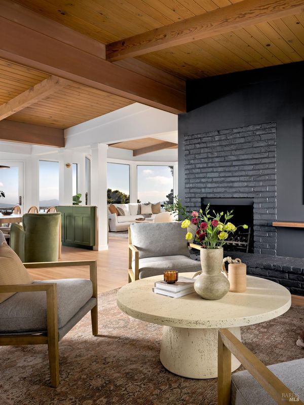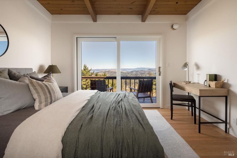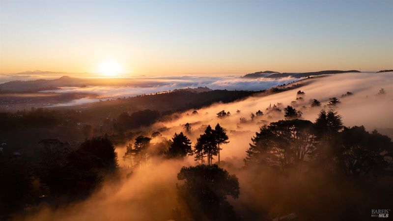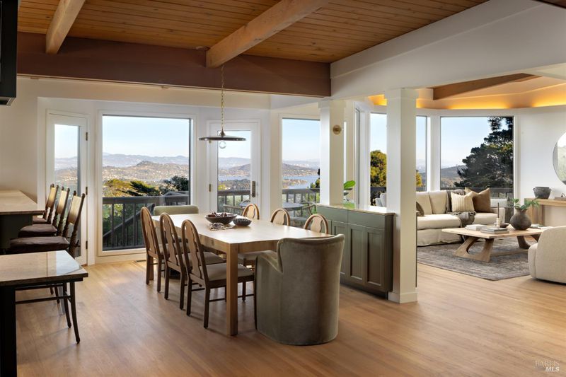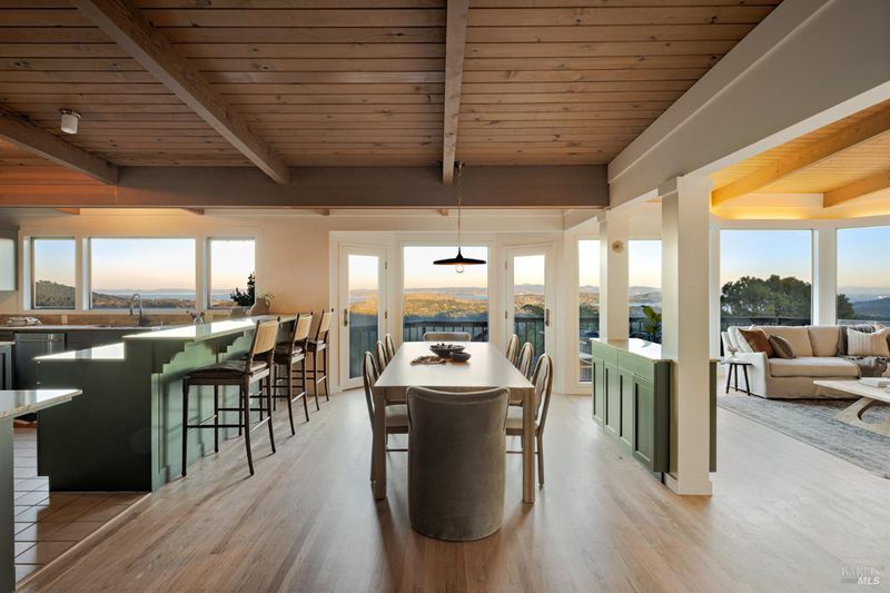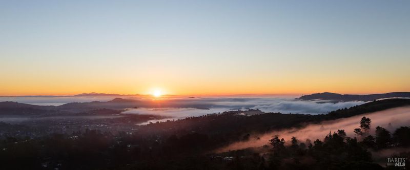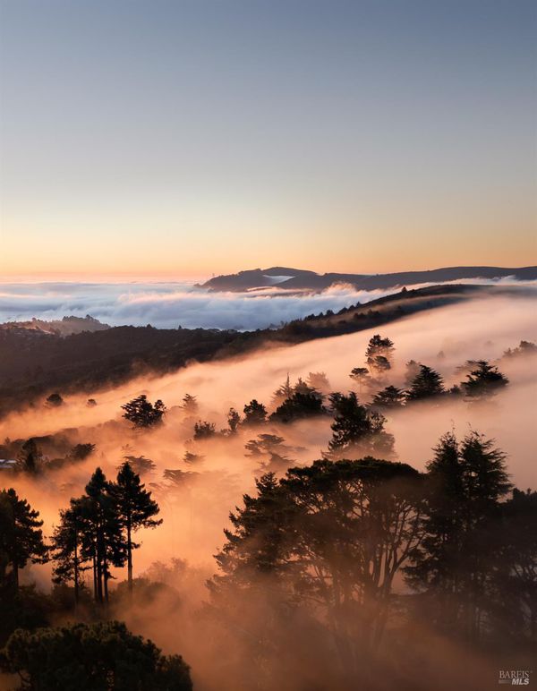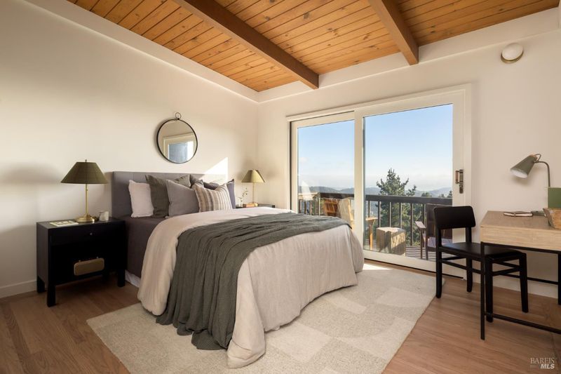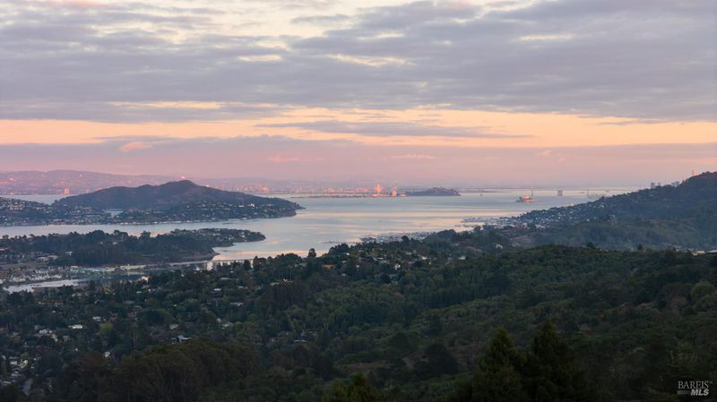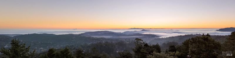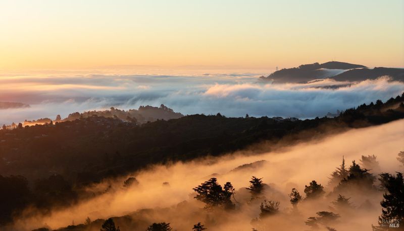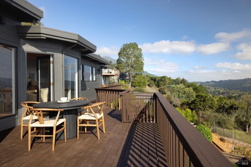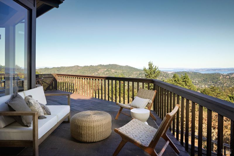 Embrace Mill Valley mountain living where wow is the first word visitors say. Perched at the top of the mountain, this reimagined mid-century home offers breathtaking 6-county views spanning Mt. Tam, Mill Valley, the Bay, three bridges, Mt. Diablo, and the city lights of San Francisco. Nearly every room features floor-to-ceiling windows framing ever-changing panoramas and endless natural light. Designed for easy entertaining and primarily single-level living, the open-concept layout connects the kitchen, dining area, great room, and family room, each with seamless indoor-outdoor flow to expansive redwood decks. The main level offers four bedrooms and three remodeled baths, including a secluded primary suite that opens to the view deck. Downstairs features a 350-bottle wine cellar and a flexible living room perfect for media, office, gym, or play. Outside, find a deer-fenced yard with level lawn, gardens, and room to play or grow. Enjoy city convenience and country serenity surrounded by trails, nature, and the close-knit Muir Woods Park community.