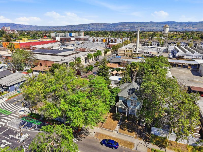 Step into a piece of San Jose history with this charming 1901 Victorian cottage, full of character and ready for its next chapter. Soaring ceilings with ornate detailing add character and guide you through the home to 3 oversized bedrooms, all equipped with ductless mini split AC units for year round comfort, and a bright living area that flows into the kitchen overlooking an expansive backyard. Set on a generous lot, this home offers strong bones and is clean and move in ready. The deep backyard is ideal for entertaining, gardening, or expansion. A detached steel carriage house, used as a garage or workshop with a large roll up door, adds incredible potential. The structure is insulated with electrical in place, and architectural plans are completed for a 2 bed, 1 bath ADU. Whether for multigenerational living, rental income, or a private retreat, the possibilities are there. The property features flexible zoning for both residential use and certain business opportunities, allowing you to live and work from the same location. Located just minutes from downtown San Jose, major tech campuses, and future growth areas, this property is well positioned for long term value. A unique opportunity to own a historic home with space, flexibility, and upside.