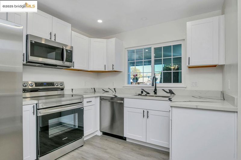 - Dishwasher, Electric Range, Refrigerator, Gas Water Heater, Breakfast Bar, Counter - Solid Surface, Electric Range/Cooktop, Disposal, Updated Kitchen