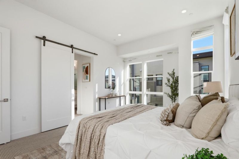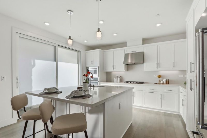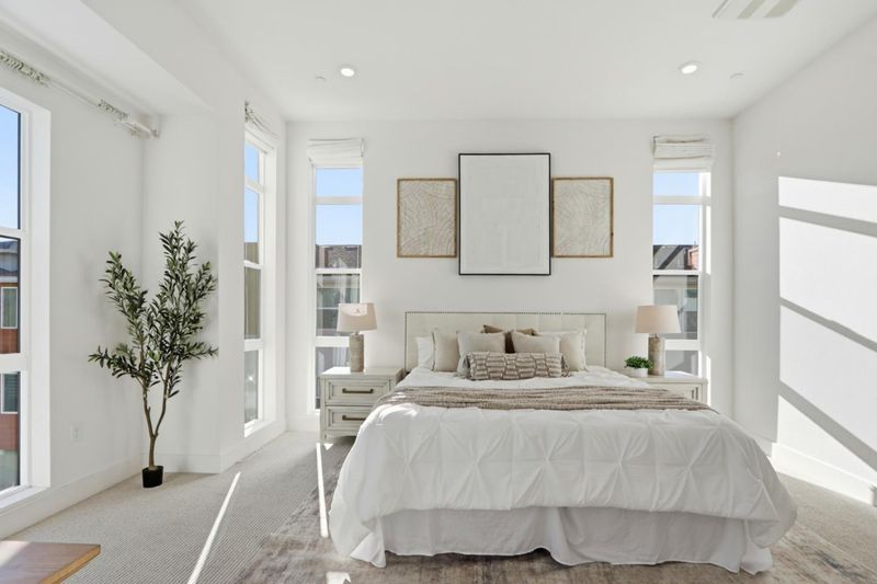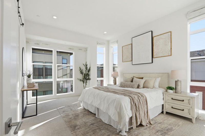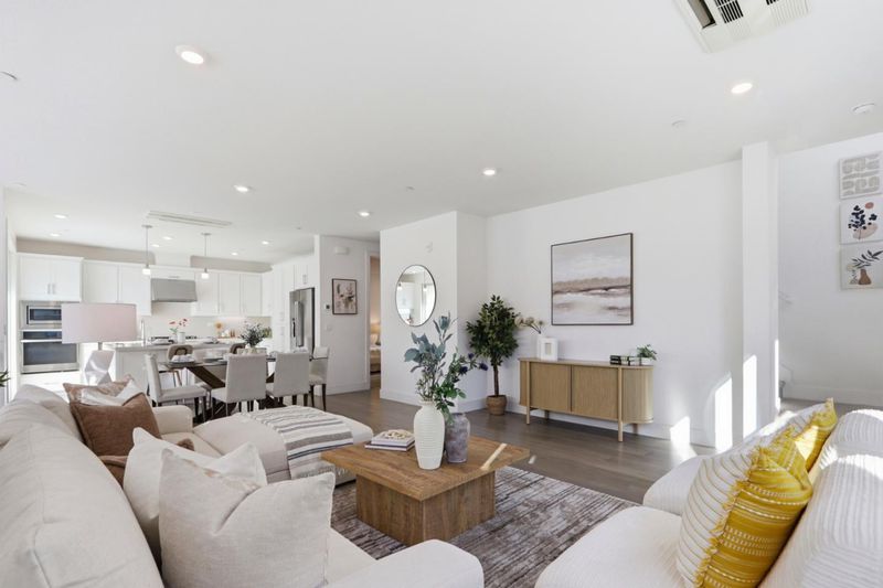 Must-see! Rarely available 3-bedroom plus den end unit corner lot townhome in the Nuevo community, built in 2020 and offering 1,924 sq. ft. of modern living space. This stylish home features three bedrooms, a versatile den, and 2.5 baths, thoughtfully designed for both elegance and everyday functionality. The chefs kitchen shines with stainless steel appliances, quartz countertops, and shaker-style soft-close cabinetry. The spacious primary suite boasts an impressive 11-foot ceiling, a walk-in closet, and a luxurious en-suite bathroom with dual vanities and a walk-in shower. Wide-plank engineered wood flooring flows throughout, complemented by smart home features including recessed lighting. The flexible den is perfect for a home office or guest room. Residents enjoy resort-style amenities such as a playground, basketball court, dog park, and beautifully landscaped common areas. Ideally located within walking distance to Costco and Whole Foods, plus dining and entertainment at Santa Clara Square and downtown Sunnyvale. Just minutes from NVIDIA, Apple, Amazon, LinkedIn, and other major tech campuses, with easy access to major highways and the Lawrence Caltrain Station. Do not miss this rare opportunity to own a modern, low-maintenance home in the heart of Silicon Valley!