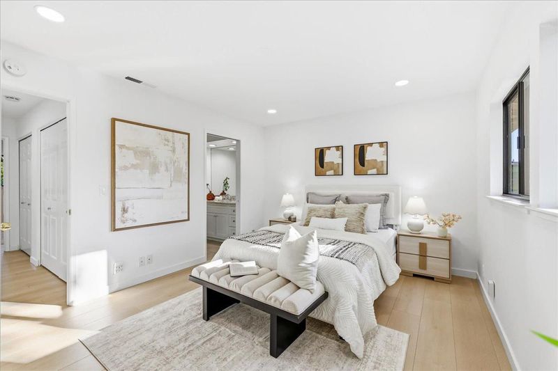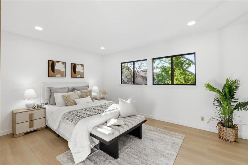 Beautifully updated and move-in ready, this stunning Mountain View townhome offers 1,171 sqt of living space with a flexible floor plan filled with natural light and wood flooring throughout. The living area seamlessly flows into a modern kitchen featuring stainless steel appliances, gleaming countertops, and sleek shaker-style cabinets. Upstairs, both generously sized en-suite bedrooms are complemented by updated bathrooms, and the primary suite boasts a private deck for relaxation. A standout feature of this home is the generous backyard, delivering the feel of a single-family home, ideal for outdoor activities. Located in the heart of Mountain View, this home is perfectly situated just half a mile from a variety of shopping, restaurants, and top-rated schools. Shoreline Park and many other parks nearby offer abundant opportunities for outdoor activities. Major tech companies like Google, Microsoft, Facebook, Apple are all close by. Caltrain, 101, 85, and Central Expressway just minutes away. With its modern updates, thoughtful design, and unbeatable location, this exceptional townhome truly has it all. You will love it and do not miss this Mountain beauty!