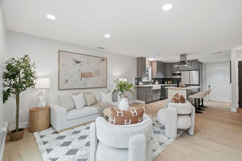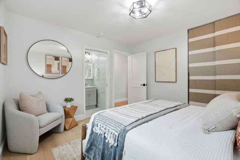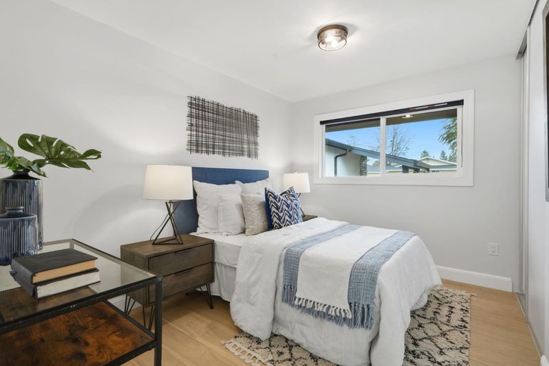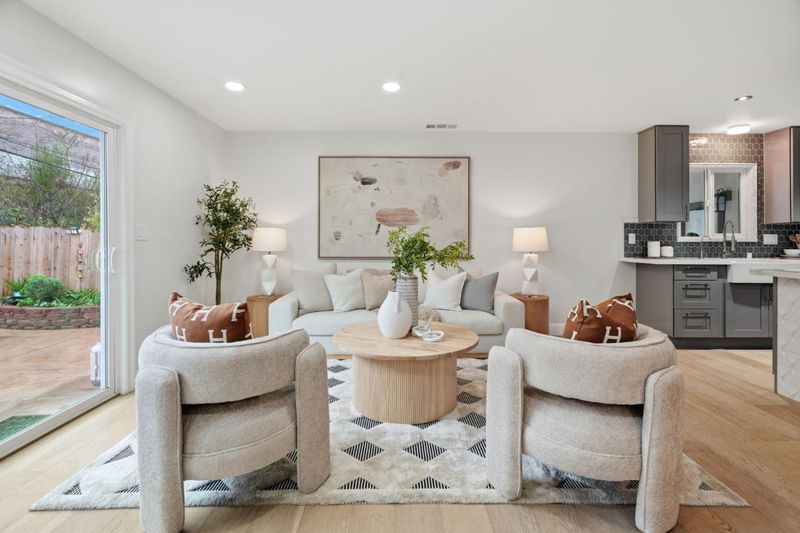 Solar-powered, fully-renovated, turnkey single family home; open & bright floor plan all on one level located in the heart of Silicon Valley. Open kitchen, living and dining areas are designed for connection, featuring custom-color cabinetry, quartz counters and an island with counter seating. Wide sliding doors extend the living space outdoors to an exceptionally large backyard with large patio and lawn, raised garden beds and mature fruit trees including persimmon and lemon. Primary bedroom suite with updated en-suite fully tiled bathroom with shower. Two additional bedrooms, each with organized closet, are served by a remodeled bathroom with large-format tile finishes and tub with overhead shower and track-hung glass doors. Throughout the home, smooth drywall finishes, solid-core doors, low-voltage lights, engineered hardwood floors and dual panes windows. Additional highlights include central air conditioning, energy efficient heat pump with central heating, attached 2-car garage and newer roof installed just 4 years ago. Minutes from Google, Stevens Creek Trail, San Vernon Park and vibrant Castro Street in Mountain View downtown. Convenient access to major commuters routes including CalTrain. Mountain View schools including excellent Mountain View High School.