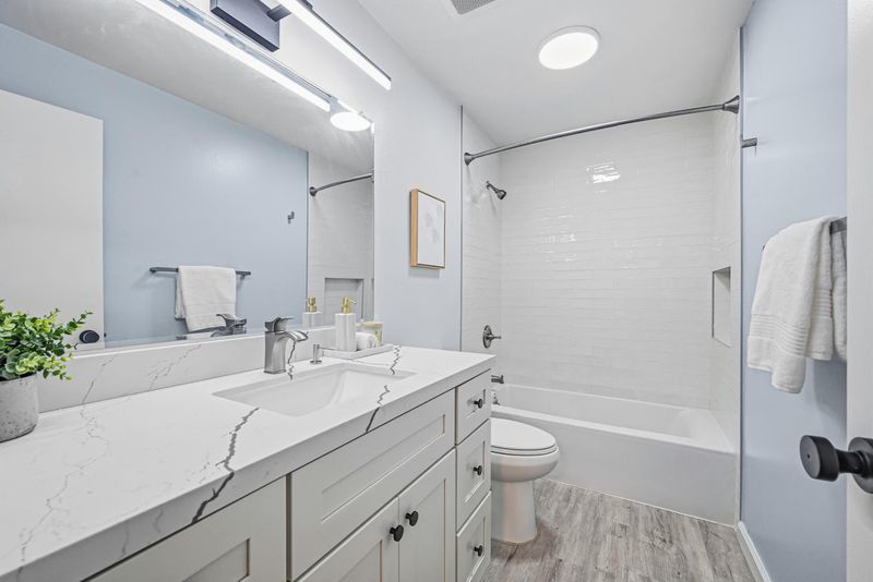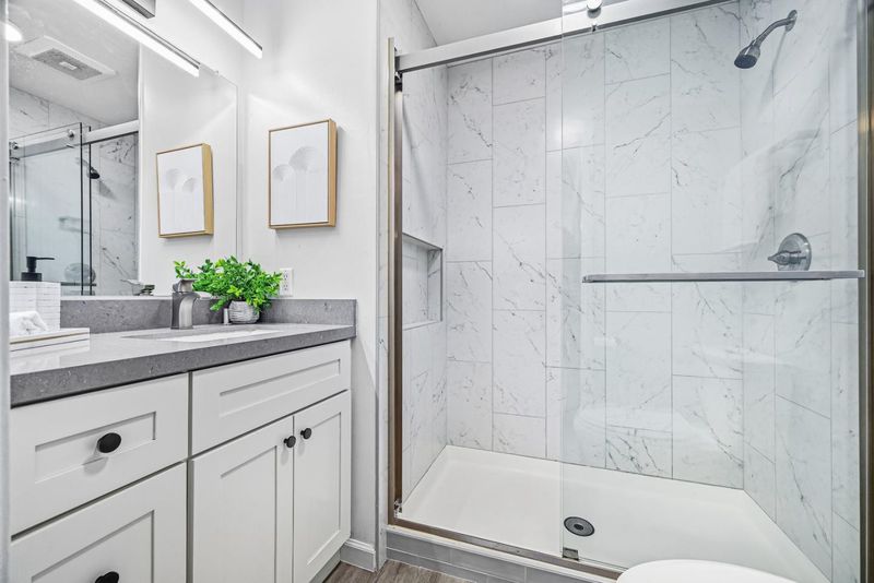 - Shower over Tub - 1, Tile, Updated Bath, Primary - Stall Shower(s)