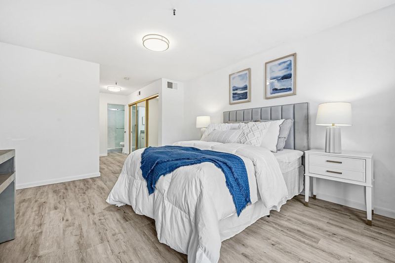 REMODELED CORNER UNIT 2-bedroom, 2-bath condo in the highly desirable Old Mill community, served by TOP-RATED LOS ALTO schools. This home features a newly upgraded open-concept kitchen with quartz countertops, custom cabinetry, and stainless steel appliance, ideal for everyday living and entertaining. The inviting living room opens to a private balcony with abundant natural light. A split-bedroom layout offers excellent privacy. The entire remodel was completed with permit, including both fully updated bathrooms. Enjoy in-unit laundry, A/C, new double-pane acoustic windows, vinyl flooring, recessed lighting, and an upgraded electrical panel. Secured building with elevator access and assigned under-building parking. Community amenities include two pools, a hot tub, updated clubhouse, and picnic areas. Exceptional location within walking distance to Whole Foods, Trader Joes, Target, 24 Hour Fitness, Caltrain (San Antonio Station), and nearby parks. Minutes to Google, Meta, Waymo, Microsoft, Amazon, Stanford University, and major Silicon Valley tech hubs. Covington Elementary, Egan Junior High, and Los Altos High (buyer to verify eligibility).