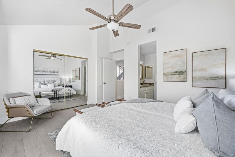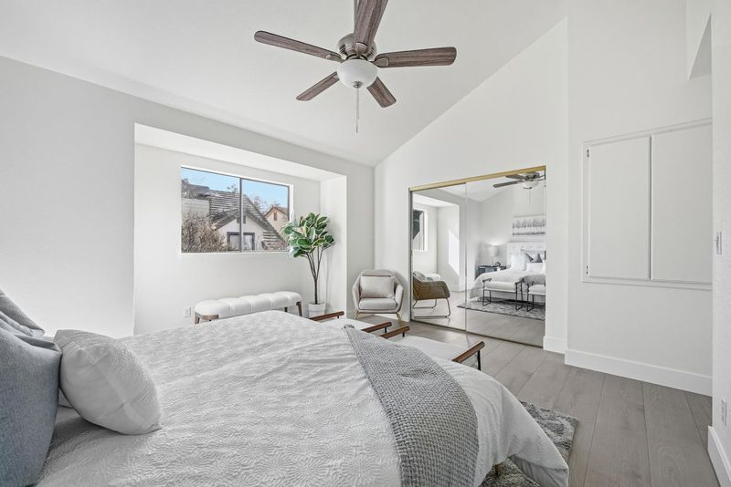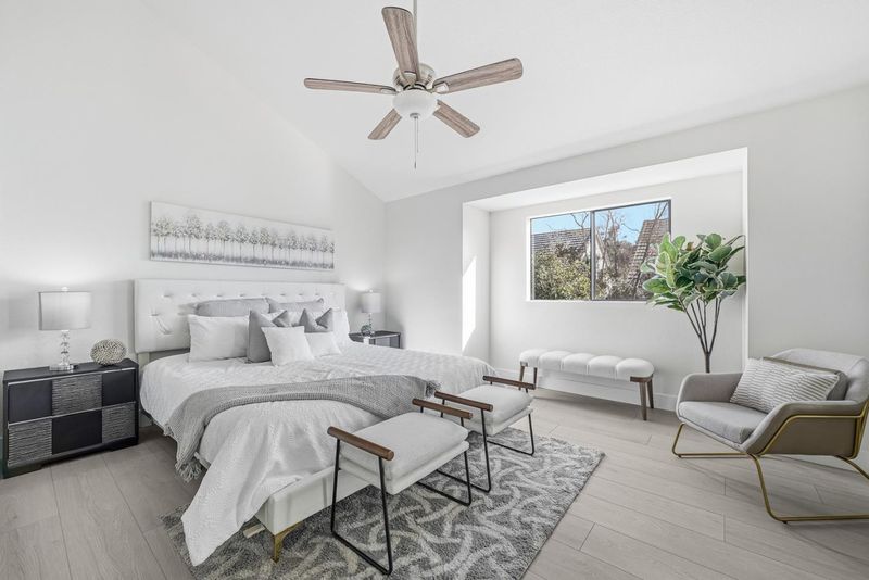 Beautifully maintained Silicon Valley townhouse located in the desirable Hamilton Place community. This light-filled 2-bedroom, 2.5-bath home offers a functional 1,224 sq ft layout with a welcoming living room featuring hardwood flooring, a cozy gas fireplace, and access to a private outdoor patio. The kitchen includes tile countertops, breakfast bar seating, dishwasher, gas oven/range, garbage disposal, and refrigerator. Both bedrooms are spacious suites with updated baths, including showers over tubs and a large primary with dual vanities. Additional highlights include in-garage laundry, double-pane windows, vinyl/linoleum flooring, and plenty of storage throughout. Attached side-by-side 2-car garage plus guest parking add convenience. Located in a quiet cul-de-sac adjacent to Los Gatos Creek Trail and minutes from downtown Campbell, Whole Foods, shops, dining, and entertainment. Easy commute with quick access to HWY 17, 85, 280, and San Tomas Expressway. Low HOA dues include exterior maintenance, management, common area electricity, landscaping, roof, fencing, and insurance. A wonderful blend of comfort, location, and value in one of Silicon Valleys best-established communities.