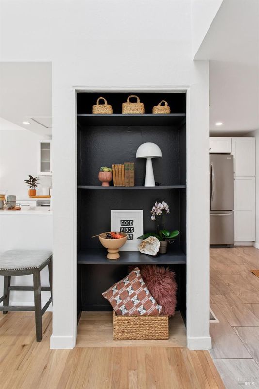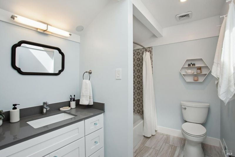 Located in the highly desirable Miller Creek community of Marinwood, this sunlit and beautifully updated 2-bedroom, 1.5-bath townhouse offers approximately 1,352 square feet of light-filled living with soaring ceilings, modern upgrades, and a private garden patio escape that defines effortless indoor-outdoor living. The dramatic main living area features vaulted ceilings, a fireplace with custom wainscoting detail, and sliding glass doors that open to an expansive private patio. Generously sized with multiple areas for dining, relaxing, and gardening, this outdoor retreat offers room for planting beds and lounge seatingperfect for enjoying Marinwood's mild climate year-round. The thoughtfully renovated kitchen showcases modern cabinetry, quartz countertops, stainless steel appliances, and clean, contemporary finishes that connect effortlessly to the dining area. A stylish barn door reveals the main-level half bath, which conveniently functions as a laundry room and includes new washer and dryer appliances for everyday ease. Upstairs, two spacious bedrooms provide comfort and flexibility. The serene primary bedroom features its own private balcony and abundant closet space, while the second bedroomhighlighted by a stylish accent walloffers versatility for guests, a home office, or creative space. The full bathroom on this level has been recently redesigned with approximately $20,000 in upgrades, featuring designer tile work, elevated finishes, and a spa-inspired shower that brings a refined, custom feel to the upper level. The current owner has invested over $72,000 in thoughtful updates throughout the home, enhancing both style and functionality with modern finishes and quality improvements. Additional improvements include electrical upgrades, attic insulation, fresh interior paint, Shade Store window coverings throughout, and numerous other enhancements that reflect true pride of ownership. Ample storage is found throughout the home, along with additional storage in the two-car covered carportan uncommon and valuable amenity. With low HOA dues of $420/month, residents enjoy access to a community pool, tennis court, and play park. Ideally located near hiking trails, within the Miller Creek School District, and close to shopping and Highway 101 access, this move-in ready residence offers comfort, style, and exceptional value.