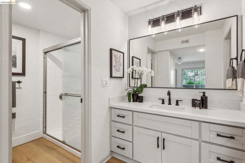 Step into this luxurious, design-forward home, where new finishes and warm white oak LVP flooring flow throughout. The open flow floor plan connects the living room with fireplace and dining area to the kitchen in and an easy indoor-outdoor circular connection to the oversized entertainment patio. This is only the beginning of your new home’s wonderful features. The kitchen is a showpiece, with an all-new appliance suite and sleek upgrades. The impressive dining area has a feature panel wall and stunning designer lighting that rounds out the common spaces. An impeccably refurbished bedroom offers a personal retreat, complete with custom overhead lighting, and direct access to a second patio for seamless peace and calm offered by the lush greenbelt grounds. The updated bathroom adds a spa-like touch, and connects to a walk-in closet. The in-unit laundry with brand new appliances ensures everyday ease. Move-in ready and freshly upgraded throughout.