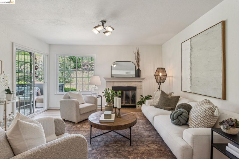 Step into this luxurious, design-forward home, where new finishes and warm white oak LVP flooring flow throughout. The open flow floor plan connects the living room with fireplace and dining area to the kitchen in and an easy indoor-outdoor circular connection to the oversized entertainment patio. This is only the beginning of your new home’s wonderful features. The kitchen is a showpiece, with an all-new appliance suite and sleek upgrades. The impressive dining area has a feature panel wall and stunning designer lighting that rounds out the common spaces. An impeccably refurbished bedroom offers a personal retreat, complete with custom overhead lighting, and direct access to a second patio for seamless peace and calm offered by the lush greenbelt grounds. The updated bathroom adds a spa-like touch, and connects to a walk-in closet. The in-unit laundry with brand new appliances ensures everyday ease. Move-in ready and freshly upgraded throughout, this home has its own dedicated parking space and is part of a well kept community featuring a pool, sauna, tennis courts, playground and lush greenbelt grounds for resort like living every day. The HOA covers a wide range of maintenance and facility expenses.