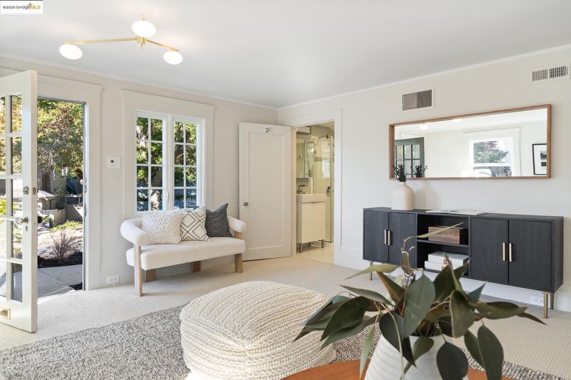 Situated in the heart of Crocker Highlands, this light-filled Traditional offers comfort, privacy & classic charm. Elevated above the street, the home features a sunny living room w/ barrel cove ceilings, treetop views & original wood-burning fireplace. The formal dining room opens to a private deck through French doors, while the adjacent eat-in kitchen boasts a pro-grade 6-burner Bertazzoni range, large center island, under-counter laundry & generous storage. Three bedrooms & 1.5 baths are located on the main level, including a rear bedroom that opens directly to the private garden. Downstairs, a separate-entry den w/ full bath creates ideal space for guests, home office or au pair. Enjoy rear gardens w/ grassy lawn, a two-car garage tucked behind the home, & a peaceful sense of separation while being moments from award-winning Crocker Highlands Elementary, the Grand Lake Farmers Market, shops & dining, Lake Merritt, & easy Bay Bridge access. A turnkey gem in a coveted neighborhood.